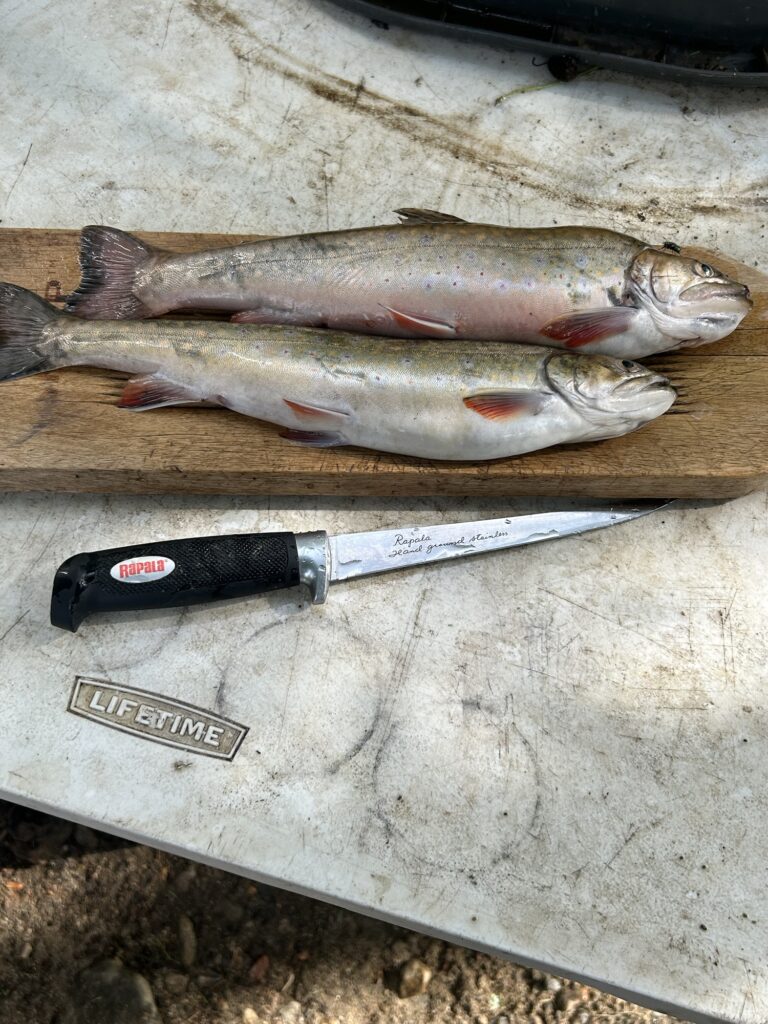 The next morning Gracie and I woke up to windy conditions. After coffee we went out to fish but were driven in by the waves with no luck. Gracie doesn’t mind the waves usually but these ones were bad. We couldn’t set our anchor and get it to hold in our fishing spots so we went back to camp for brunch. I had frozen 2 of the biggest walleye the night before just to guarantee some take home fish. I wasn’t planning on eating walleye everyday but I was hoping to be able to catch fish that evening. We sat out the day doing camp chores and taking a nap at one point after getting a nice hot shower. This sure beat camping out! Time was already speeding by as it always does at bush camp.
